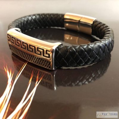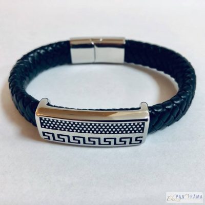 Rozsdamentes acéllal és fekete bőr szíjjal kombinált férfi karkötő. Igazán fiatalos, férfias, sportos viselet.