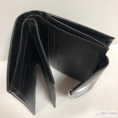 Moretti díszdobozos, olasz, lakkbőr pénztárca, fekete színben, ami ezüstös erezéssel mintázott.