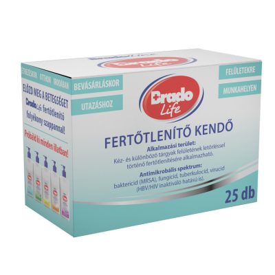 Alkalmazás: kéz- és különböző tárgyak felületének fertőtlenítésére alkalmazható. Fertőtlenítőszerrel átitatott törlőkendő.