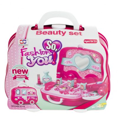 A szett tartalma: bőrönd, ragasztók, 2 db karkötő, 3 db gyűrű, 1 db nyaklánc, 3 db körömlakkos üveg, 2 db műanyag szájfény, hajszárító, tükör, fésű, műanyag parfümös üveg.