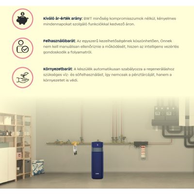 • BWT Perlamat vízlágyító berendezés egy egyoszlopos, szakaszos üzemű, mennyiségvezérelt, ioncserés vízlágyító