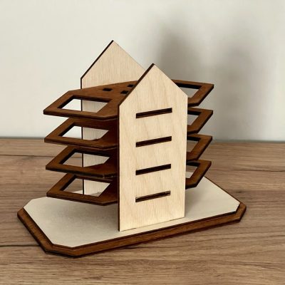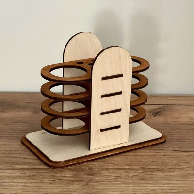Ez a lézervágott fa toll- és ceruzatartó egy kifejezetten egyszerű és letisztult rendszerező. A cseresznyebarna pácolása esztétikus megjelenést ad. Íves és szögletes variációkban készítjük.