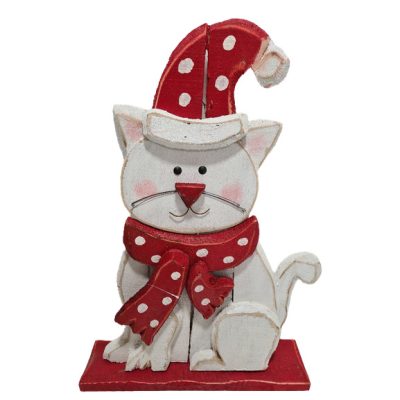 Cica mikulás sapkábanMéret: 43x10x60cmTalpas, piros/fehér színAnyaga: fa