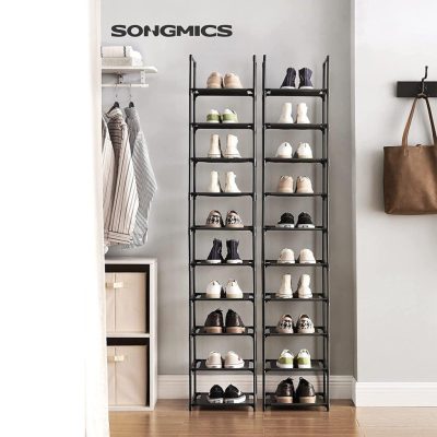 • Helytakarékos, mégis tágas: Ez a 33 x 33 x 173 cm-es méretű 10 szintes cipőtartó segít értékes alapterület megtakarításában, miközben rengeteg tárolóhelyet kínál.Szóval miért nem kényeztetné magát ezzel a tágas állvánnyal egy rendezett otthonért?