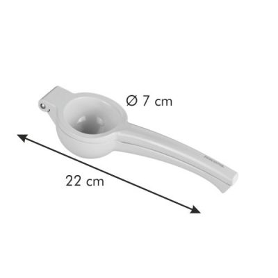 A GrandCHEF citromprés 22 cm-es hosszúságával kényelmes és hatékony eszköz a mindennapi konyhai munkához. Tartós fémötvözetből készült, így ellenáll az erősebb nyomásnak is, miközben elegáns, letisztult kialakítása miatt bármilyen konyhába illik.