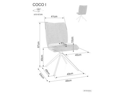A Coco I Vardo étkezőszék egy elegáns és praktikus bútordarab, amely tökéletesen ötvözi a modern dizájnt a funkcionalitással. A szék magas minőségű Vardo szövettel van kárpitozva bézs színben, amely kellemes tapintású és tartós. A matt fekete fém váz stabil alapot biztosít, míg a 180 fokos forgási képesség és az automatikus visszatérési funkció extra kényelmet nyújt.
