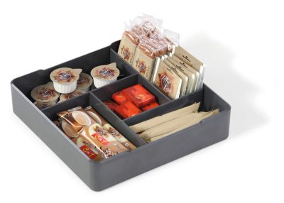 hogy kávé kiegészítőket tároljunk benne, mint cukor, keverőpálca, kávétejszín, csoki stb.