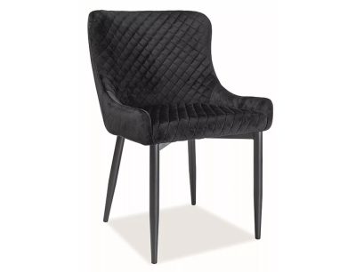 A Colin B étkezőszék a modern design és a kényelem tökéletes ötvözete. A fekete bársony kárpitozás steppelt mintázata különleges megjelenést kölcsönöz a széknek. A matt fekete fém váz stabil alapot biztosít, miközben karcsú vonalai könnyedséget sugároznak. A szék háttámlája ergonomikusan kialakított, ami kényelmes támaszt nyújt.