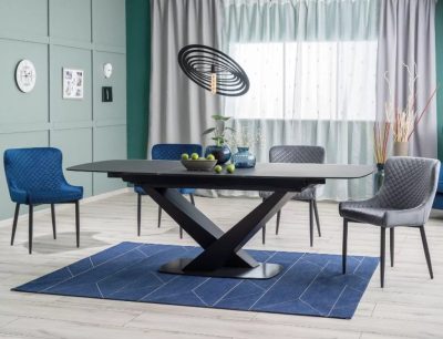A Colin B étkezőszék a modern design és a kényelem tökéletes ötvözete. A szék steppelt bársony kárpitozása különleges rombusz mintázattal készült, amely nem csak esztétikus, de rendkívül kényelmes is. A matt fekete fém váz stabil alapot biztosít, miközben karcsú megjelenést kölcsönöz a széknek. A szürke árnyalat és a minőségi anyaghasználat elegáns megjelenést biztosít.