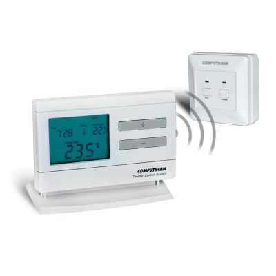 A vezeték nélküli Computherm Q7 RF digitális, programozható szobai fűtés termosztát számos funkcióval, nagy gombokkal a kényelmes használatért. Bármely kazánhoz csatlakoztatható, amely kétvezetékes csatlakozási ponttal rendelkezik. A hét minden napjára 6 kapcsolási időpont és hőfok állítható be, a program átmeneti megváltoztatására négy különböző lehetőség van (a következő kapcsolásig, maximum 9 órára, maximum 99 napra vagy a következő kézi beavatkozásig). A digitális kijelző révén minden adat pontosan leolvasható.