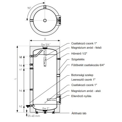 Elektromos fűtőbetéthez bekötési csonkkal rendelkezik a tároló