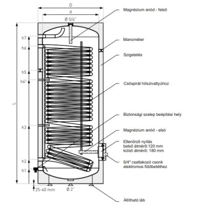 • Spirális tekercs a tartály teljes magasságában