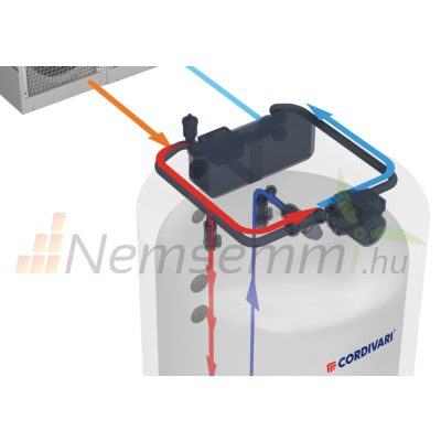 • Cordivari Bolly 3 PDC 300 indirekt tároló belső és külső hőcserélővel 15kW hőszivattyúhoz köthető keringető szivattyúval felépített HMV tartály A energiaosztály