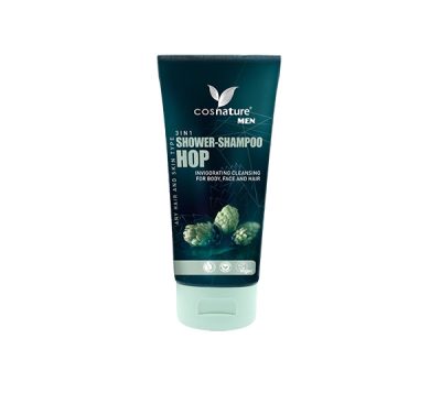 A komlóval készült Cosnature® MEN 3 az 1-ben tusfürdő-sampon frissíti és táplálja a hajat és a bőrt: