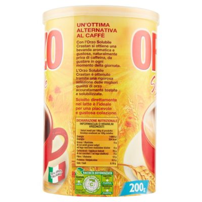 A Crastan Orzo Instant Kávé egy hagyományos olasz árpakávé, amely tökéletes alternatívája a klasszikus kávénak. Gazdag, pörkölt árpa ízvilága koffein nélkül biztosít egy kellemes, melengető italt, amely bármely napszakban fogyasztható. Könnyen és gyorsan elkészíthető, így ideális választás reggelire vagy egy pihentető délutáni szünethez.