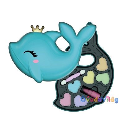 Delfin formájú kompakt sminkkészlet, amelyet bárhová könnyedén magaddal vihetsz. A delfinen egy cuki korona található, akárcsak a termékcsalád többi állatfiguráján is.