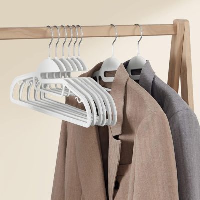 • [Helytakarékos] Ezek a kiváló minőségű műanyag vállfák mindössze 0,5 cm vastagok, és kabátokat és nadrágokat, valamint sálakat és nyakkendőket akaszthat a középső rúdra, így több ruhát is akaszthat ugyanabban a szekrényben.
