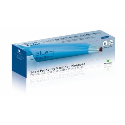 A Csúszásmentes Kék Habzsák, 55 cm-es eldobható, 100 db/csomag praktikus és megbízható választás minden cukrászati és sütési feladathoz. A többrétegű, 80 mikron vastagságú polietilén anyag tartós és strapabíró, míg az exkluzív csúszásgátló külső biztosítja a kellemes tapintást és a kényelmes, stabil fogást. A sima belső felület lehetővé teszi a hideg, forró, kemény vagy lágy anyagok egyszerű és pontos adagolását.