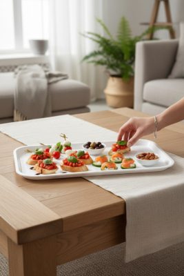 A tálca tisztítása rendkívül egyszerű és gyors. Elegendő egy nedves ruhával áttörölni, vagy akár mosogatógépben is elmosható. Kompakt méretének köszönhetően könnyen tárolható, amikor éppen nincs használatban.