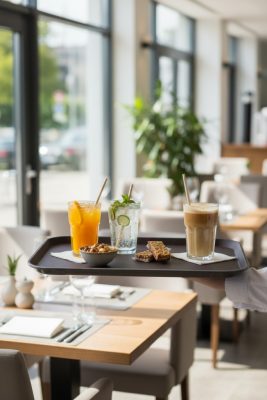 Az éttermekben és kávézókban használják az ételek és italok szervírozásához.A csúszásmentes felület megakadályozza az ételek vagy italok elcsúszását, így biztonságosabbá és rendezettebbé teszi az éttermi szolgáltatást.