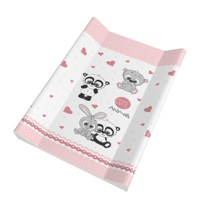 Cuki Állatok – Pelenkázólap merev peremes 70×50 cm | Rózsaszín, kis szívecskékkel