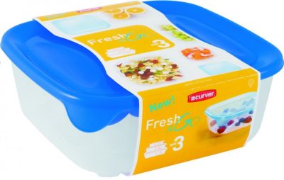 Curver F&G Ételtartó szett (0,25+0,8+1,7L) Szögletes Sötétkék/Átlátszó/ (6/karton)