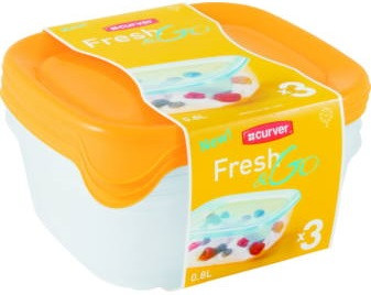 Curver Fresh&Go Ételtartó szett (3x0,8L) Szögletes Narancs/Átlátszó (6/karton)