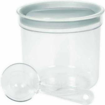 Legmagasabb minőségű anyagokból készült praktikus ételtároló. Ömlesztett termék tárolására. Az ételtároló adagolást megkönnyítő mérőedénnyel felszerelt. Mosogatógépben mosható. Konyhájában nélkülözhetetlen. A termék élelmiszerrel való kapcsolatra feljogosító tanúsítvánnyal rendelkezik. Méretek (szé x mé x ma) 130x130x120 mm
