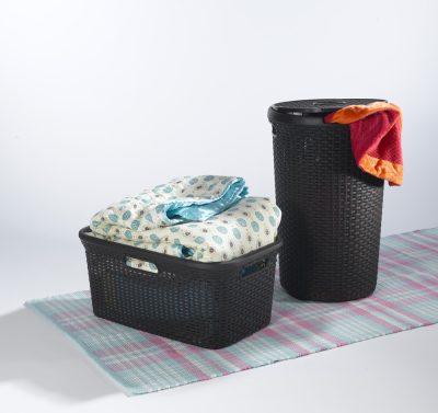 A CURVER ezen modellje egy 45 literes, fogantyúkkal ellátott modern, rattan stílusú szennyeskosár.