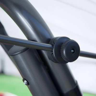 Poliészter-epoxi porfestékkel festett keret antracit árnyalatban. Az ülés lehajtható, hogy a háttámlára lehessen feküdni.A hintaágy teteje poliészterből készült.