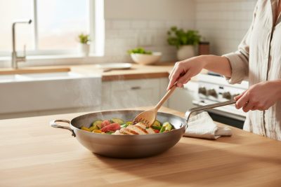 • Praktikus fül: A fül megkönnyíti a wok mozgatását és használatát.