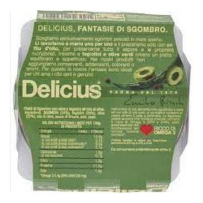 Delicious olivás makréla, 160 g. Összetevők: makréla, zöldbab, olivabogyó, olivaolaj, citromlé, só, bors. Átlagos tápérték 100g termékben: Energia: 744 kJ/ 179 kcal, Zsír: 14,4 g, ebből telített zsírsavak: 2,1 g, Szénhidrát: 1,5 g, ebből cukrok: 0,7 g, Rostok: 1,2 g, Fehérjék: 11 g, Só: 1,4 g. Minőségét megőrzi a csomagoláson feltüntetett időpontig. Hűvös, száraz helyen tárolandó. Származási ország: Olaszország. Forgalmazó: Milis Faplusz Kft., 8092 Pátka, Gárdonyi u. 36