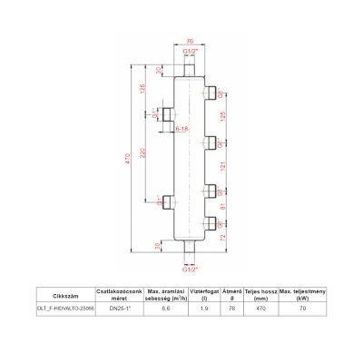 • DELTA 6 csonkos inox hidraulikus váltó szigeteléssel, 1”, 6.6 m3/h