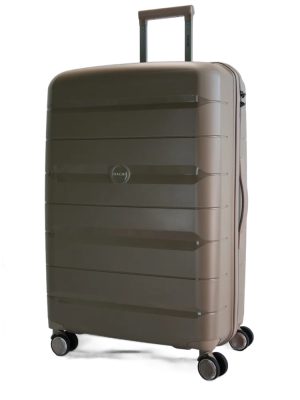 Hachi Delta a törhetetlen útitárs. Európai gyártmányú merev falú polipropilén bőrönd, melyet strapabíró és kemény ütésálló anyag jellemez. A teleszkópos húzószerkezet és 360 fokban elforgó dupla kerekek biztosítják a könnyű és kényelmes utazást. A felső és oldalsó kézi fogantyúk segítik a könnyű kezelhetőséget. Belseje kétrekeszes, cipzáras elválasztóval és ruharögzítő keresztpántokkal ellátott. A süllyesztett háromjegyű biztonsági TSA számzár egyénileg programozható. Különböző színváltozatokban és S, M, L méretben elérhető. A bőrönd színe eltérhet a képernyőn látottaktól.