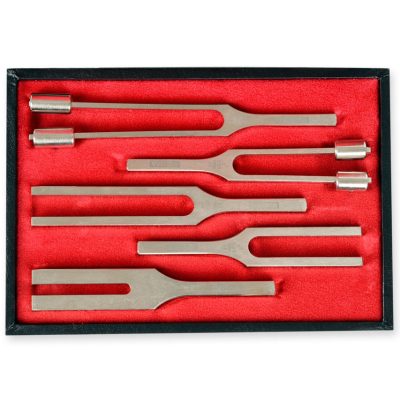 5 hangvillából álló készlet elegáns bélelt tokban (128 Hz, 256 Hz, 512 Hz, 1024 Hz, 2048 Hz).