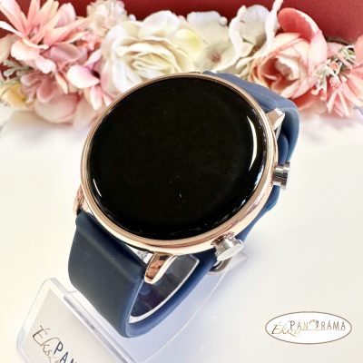 • Digitális karóra , női, kör alakú, arany színű tokkal, sötétkék szilikon szíjjal
