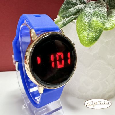 • Digitális karóra , női, kör alakú, arany színű tokkal, szilikon szíjjal- kék