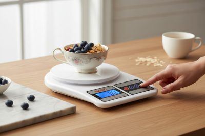 • TARE-rutin: edény a mérlegre → TARE → hozzávaló → TARE – így nincs fejben matek.