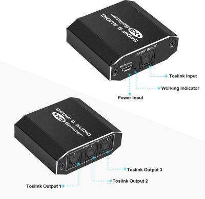 • Digitális SPDIF optikai toslink audio Splitter elosztó 1x3 1 bemenet 3 kimenet