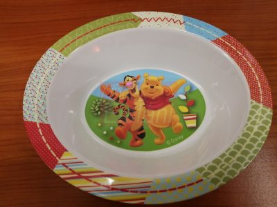 Micimackós figurás, patchwork ovális mélytányér Anyaga: melamin műanyag