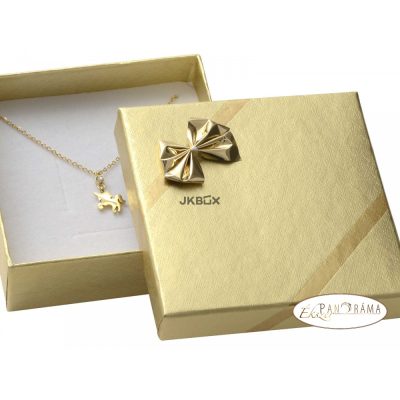 Arany színű papírdoboz masnival, kis készletek, láncok, karperecek számára.