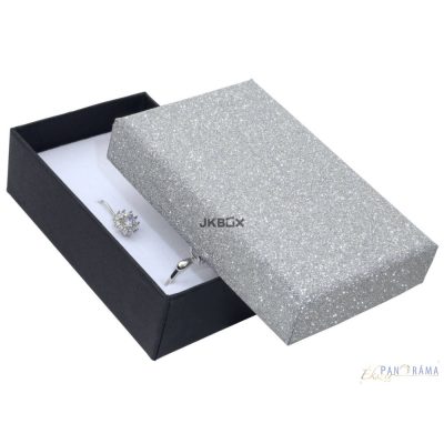 Ezüst csillámos papírdoboz, kisebb szett számára.