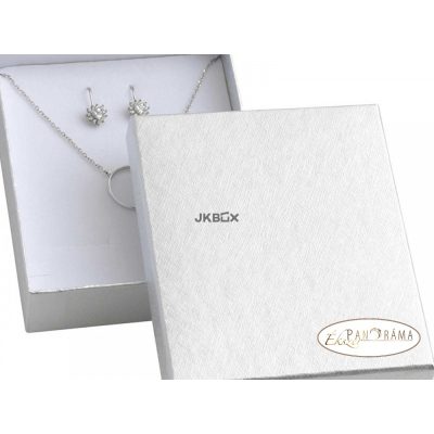Ezüst színű papírdoboz masni nélkül, nagyobb készletek, láncok, karperecek számára.
