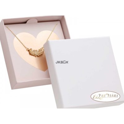 Púder színű kis papír doboz teteje fehér. Belül elegáns, arany szív, ami kiemeli a bele rakott medélos nyakláncot! Alkalmas láncok, karláncok számára.