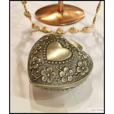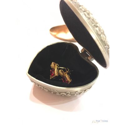 Díszes Ón dobozka, szív alakú, belül fekete bársonnyal bélelt!