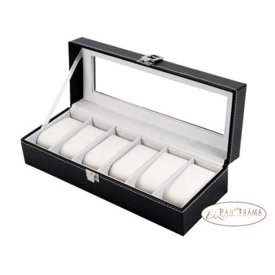 Fémzáras díszdoboz, minden óratipushoz alkalmas. Bőrhatású anyagból, nagyon igényes kivitelben.