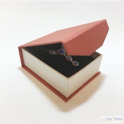 Díszdoboz kisebb szetteknek, fülbevalók, páros gyűrűk részére, mágneses zárral záródik. Színe metál piros-fehér
