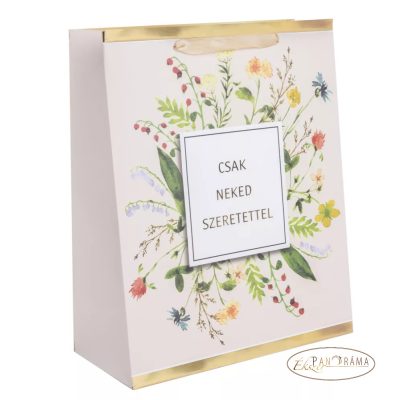 Virágos mintázatú dísztasak selyem szallag fogóval, Csak neked szeretettel felirattal.
