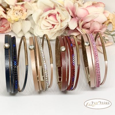 Divatos bőrhatású karkötő strasszokkal, középen kis kővel díszítve.