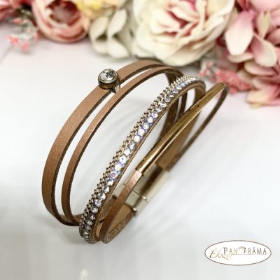 • Divatos bőrhatású karkötő strasszokkal, mágnes zárral - Bronz